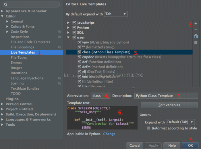 live templates 主要是偷懒用的,采用事先定义好的模板,一个按键完成一长串的代码输入:
