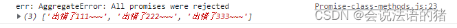 它就会走catch了,并且打印出了错误信息,其中的 err.errors中会有我们reject传递的错误信息,err是它内部封装的错误提示