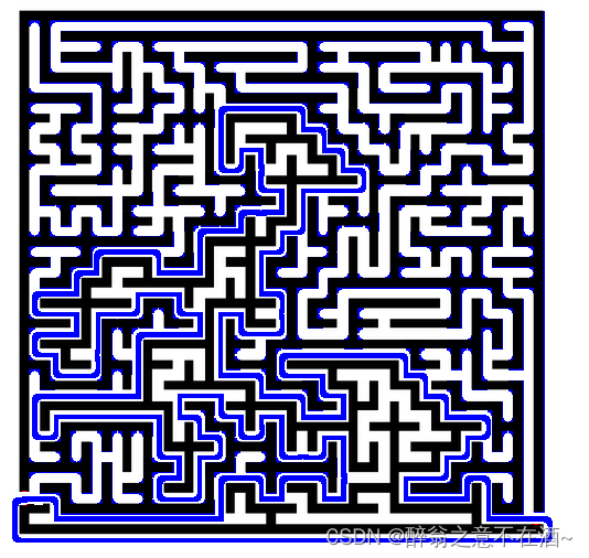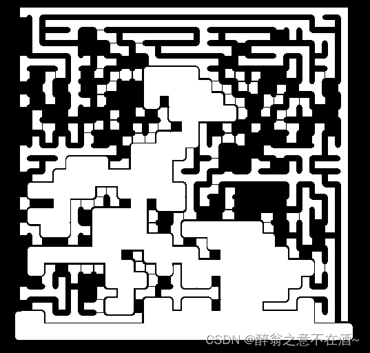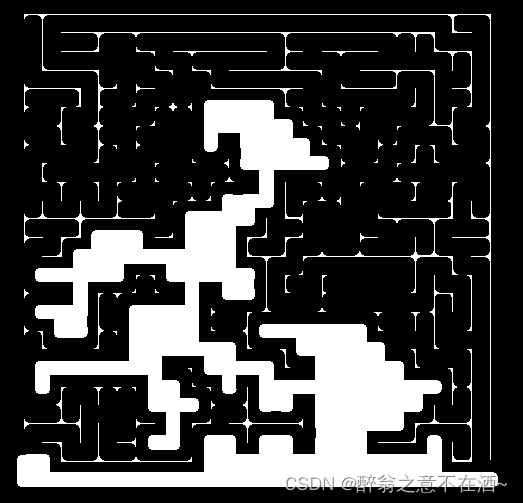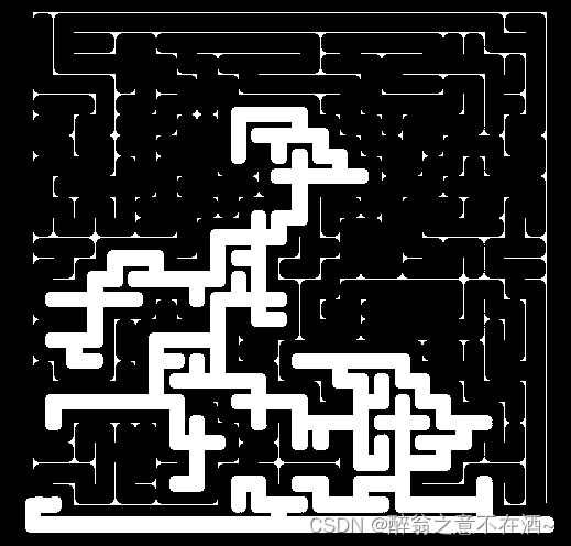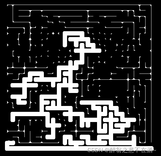 此时我们的图像就反了过来,我们只需要找到一条从入口连续到出口的黑线即可。