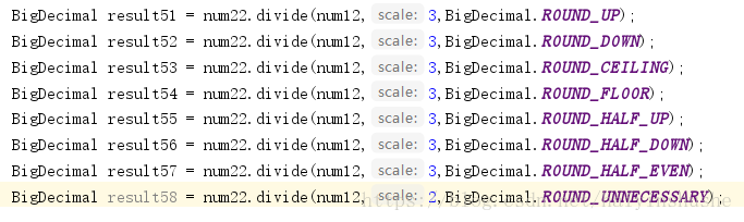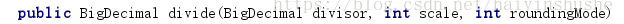 即为 (BigDecimal divisor 除数, int scale 精确小数位, int roundingMode 舍入模式)