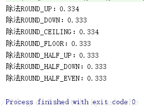 计算1÷3的结果(最后一种ROUND_UNNECESSARY在结果为无限小数的情况下会报错)