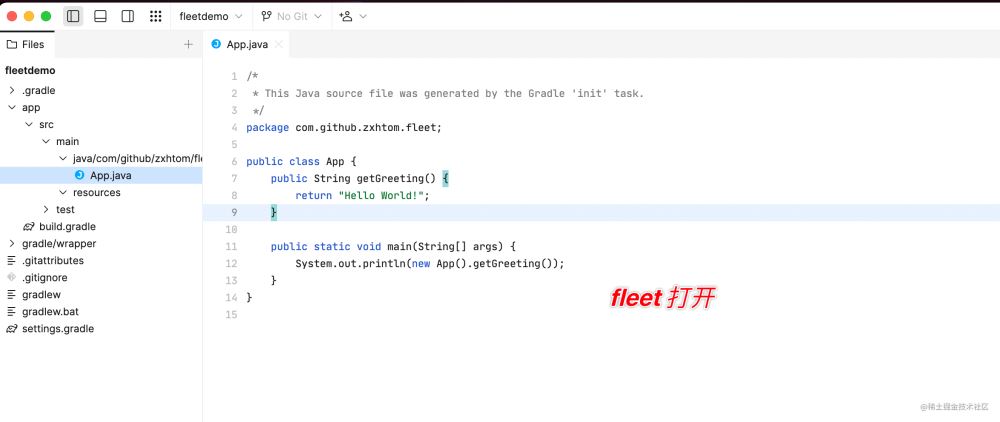 通过fleet test.java我们直接使用fleet打开该文件。也可以直接打开文件夹
