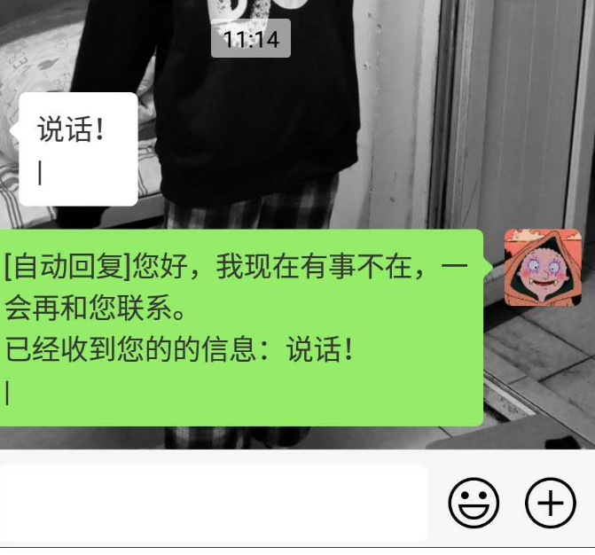 return u'[自动回复]您好,我现在有事不在,一会再和您联系。\n已经收到您的的信息:%s\n' % (msg['Text'])