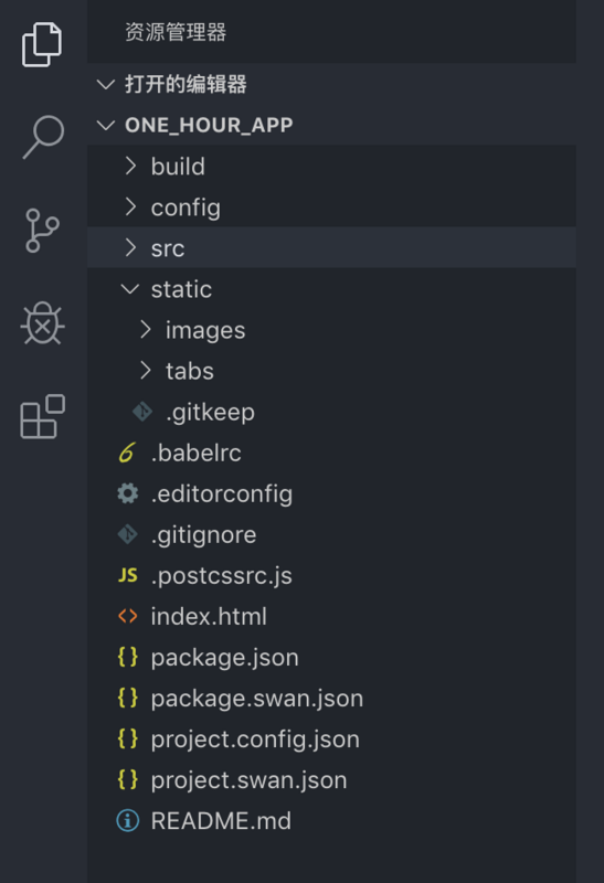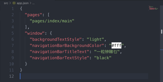 src/app.json对应到页面路由pages配置、头部windows的样式和文字设置、脚部tabBar菜单配置,现在只保留如下: