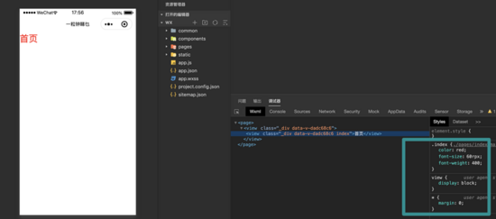 这样,就可以在编辑器写我们的代码,然后在微信开发者工具里面可以像浏览器一样查看页面效果。