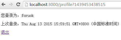 profile.jade放在views目录下。profile页面显示一条登录成功的消息,还显示上次登录时间,最后提供了一个退出链接。