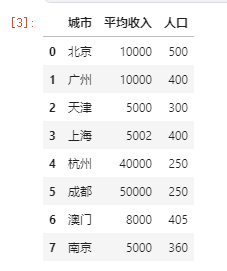 df = pd.DataFrame({'城市':['北京','广州', '天津', '上海', '杭州', '成都', '澳门', '南京'],