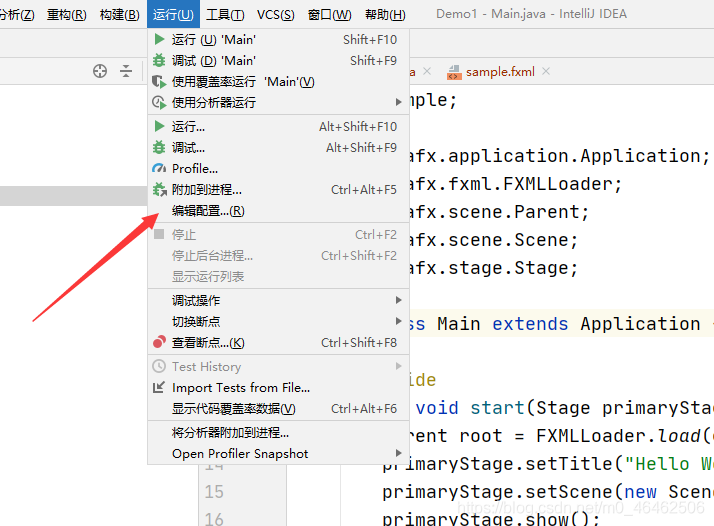 8.但是此时还不能运行,还差最后一步,点击最上方的运行—编辑配置