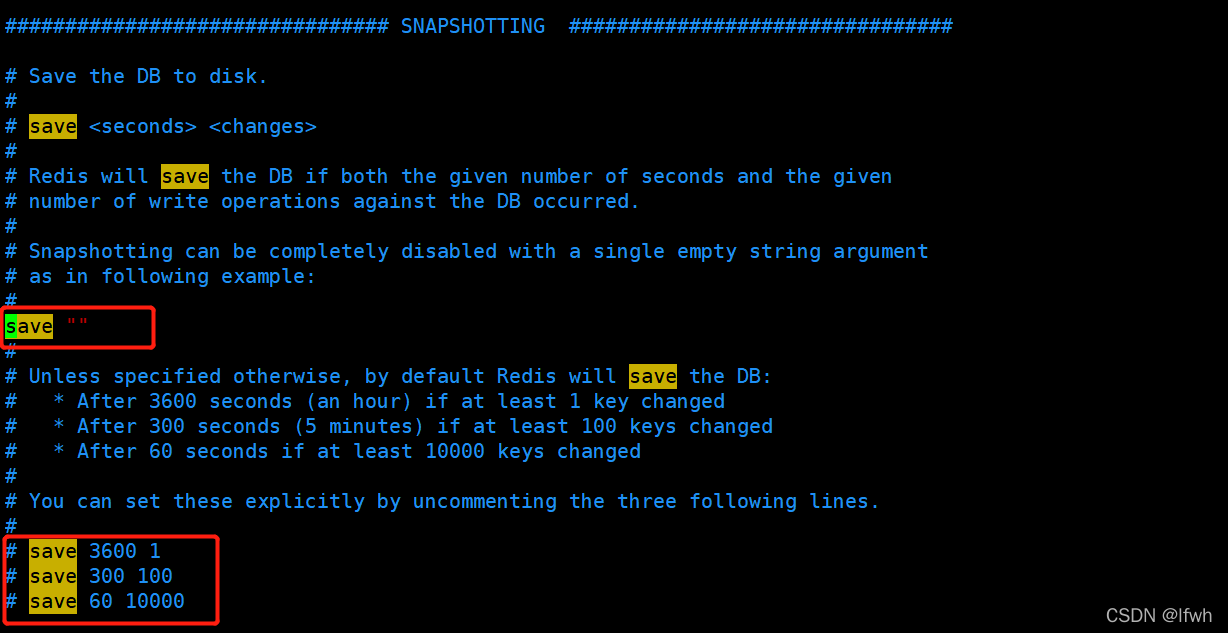 目录 前言 一.关闭持久化 二.关闭失效问题 三.开启持久化 前言 版本 :Redis6.X 一.关闭持久化 Redis是默认开启RDB的,AOF则是默认关闭的.相当于初始安装的Redis是持久化的. 如何关闭redis持久化?我的需求是只把redis当作缓存来用,所以持久化到硬盘对我的需求来说没有意义. 1.修改redis.conf配置文件 1.1.注释掉原来的持久化规则 # save 3600 1 # save 300 100 # save 60 10000 1.2.设置为空 save "&