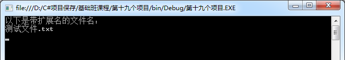 string Str1=@"C:\Users\Administrator\Desktop\测试文件.txt"; Console.WriteLine("以下是带扩展名的文件名:"); Console.WriteLine(Path.GetFileName(Str1)); Console.ReadKey();