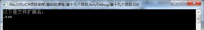 string Str1=@"C:\Users\Administrator\Desktop\测试文件.txt"; Console.WriteLine("以下是文件扩展名:"); Console.WriteLine(Path.GetExtension(Str1)); Console.ReadKey();
