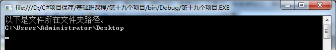 string Str1=@"C:\Users\Administrator\Desktop\测试文件.txt"; Console.WriteLine("以下是文件所在文件夹路径。"); Console.WriteLine(Path.GetDirectoryName(Str1)); Console.ReadKey();