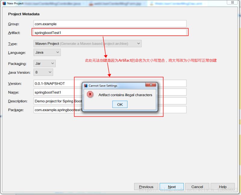 4、当我点击NEXT时,却出现如图4所示的错误,这由于创建时因为Artifact的命名为大小写混合,将大写改为小写即可正常创建。