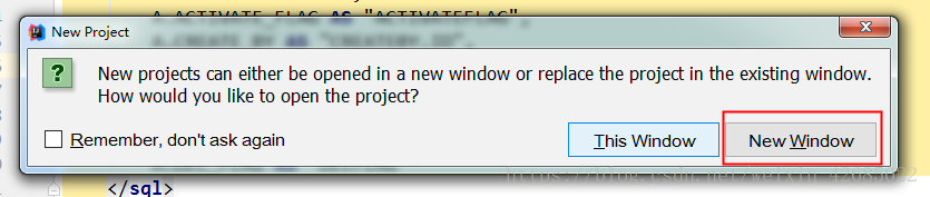 7、点击Finish后,出现如图7所示页面,我们选择New Window即可,即在新的IDEA中打开我们新建的项目。