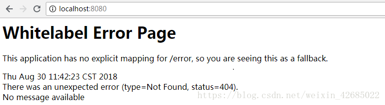 接下来再次尝试重新启动项目。发现项目可以正常启动了。可以打开浏览器访问http://localhost:8080/,访问结果如图12所示。证明项目正常启动了。