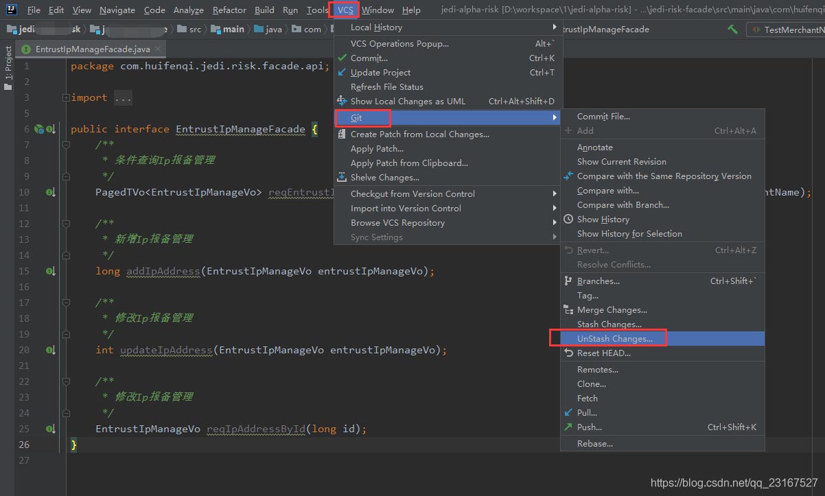 详解idea中Git的Stash Changes和UnStash Changes用法