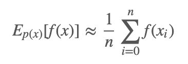 蒙特卡洛法根据概率分布 p(x) 独立地抽样 n 个样本 x1,x2,…..xn,得到近似的 f(x) 期望为: