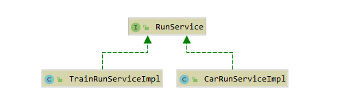 首先介绍下代码结构:有RunService,以及它的两个实现类:TrainRunServiceImpl和CarRunServiceImpl