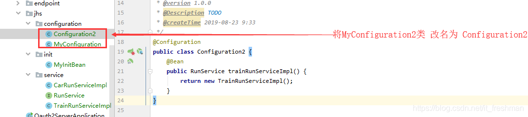 将MyConfiguration2重命名为Configuration2,而它的加载顺序在MyConfiguration之前,执行程序成功。