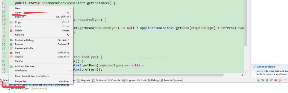 4.在tomcat上右键选择“open”,打开tomcat的修改界面