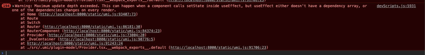Warning: Maximum update depth exceeded. This can happen when a component calls setState inside useEffect, but useEffect either doesn't have a dependency array, or one of the dependencies changes on every render.