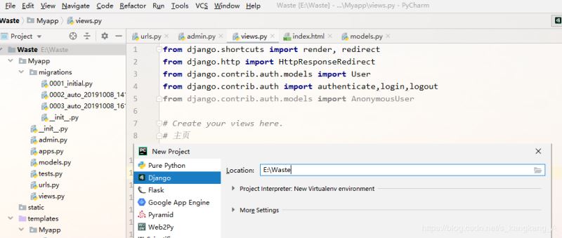 单击File —> 选中Django —> 在右侧Location选中所需的路径,或直接在框里命名