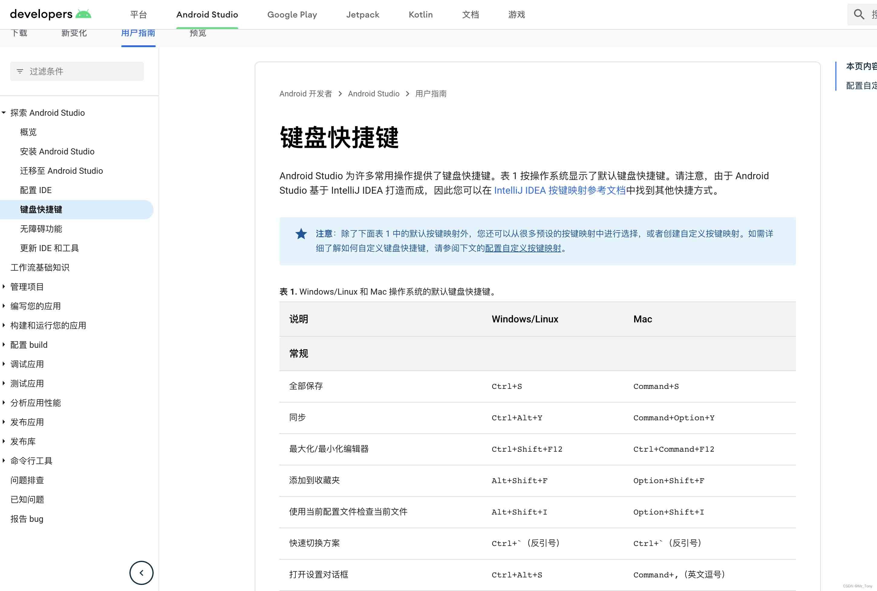 3.(这个链接可以通过Android studio -> help ->Android Studio Help 找到)键盘快捷键
