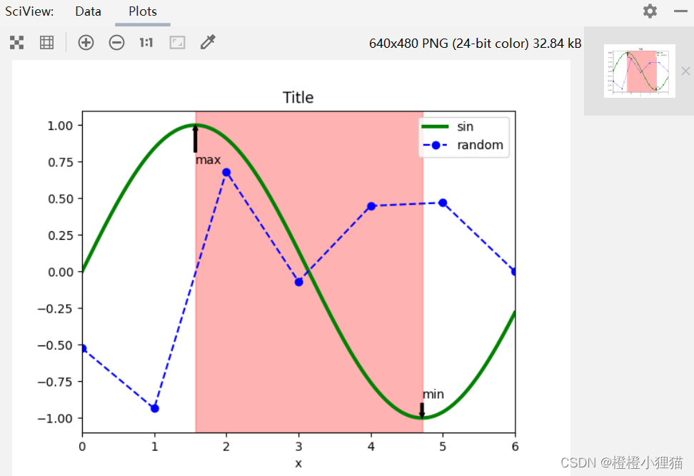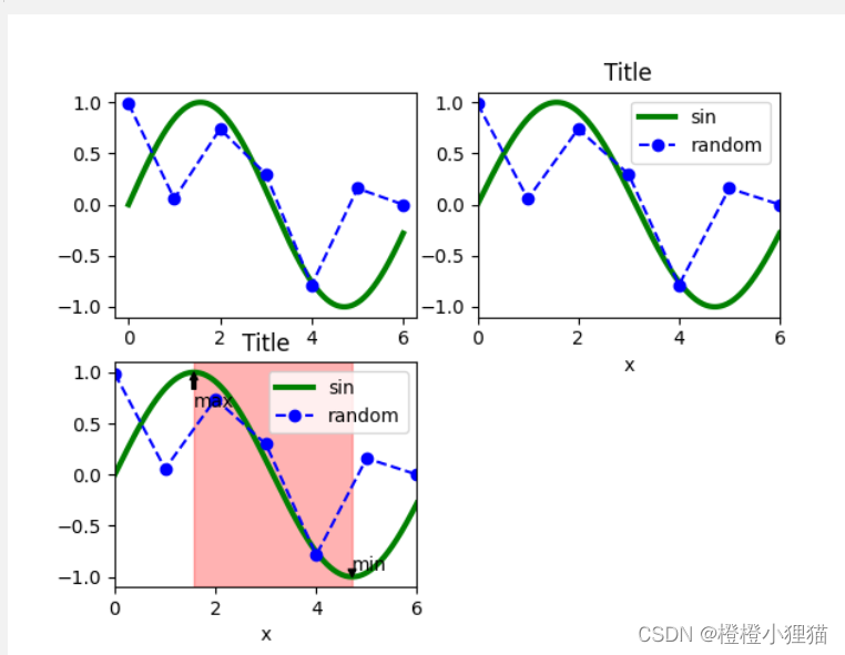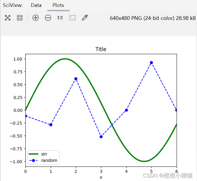 1.一个正弦函数和一个随机数值的曲线,正弦函数直线,随机数值曲线虚线以及其他样式修改;