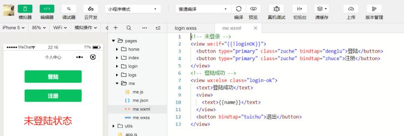 #### 到这里我们就完整的实现了小程序的登陆注册功能了,虽然比较简单,没有做密码加密等一些复杂的操作,但是我们基本的登陆注册原理就是这样实现的,你只有先把最基础的登陆注册功能实现,学习后面复杂的登陆注册,验证码登陆等一系列知识,才会游刃有余。