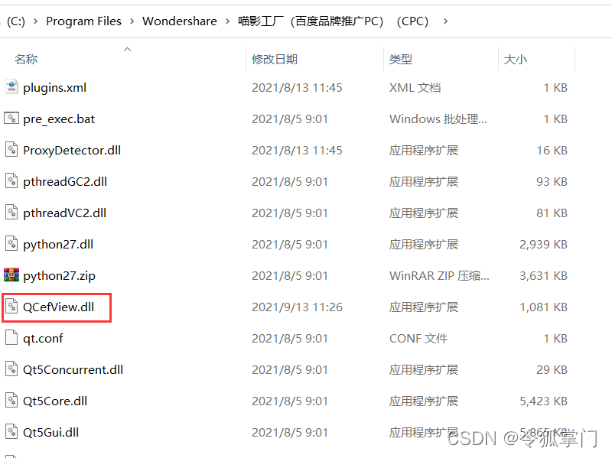 如果从事C++客户端开发,对CEF应该不陌生,当C++界面需要和web交互时,CEF是很好的解决方案,当然Qt也提供了QWebEngineView来进行web交互,最近在万兴喵影的安装目录看到了QCefView.dll,之前也听说过这个库,没在意,没想到还真有人用到项目里面,于是决定自己编译写个demo看看,下图时万兴喵影的安装文件截图: