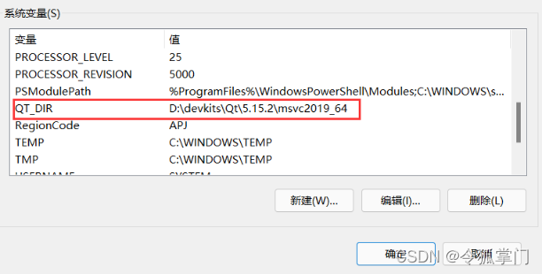 然后去环境变量里看看是否有Qt相关的设置,有的话最好先删掉,然后添加如下系统配置