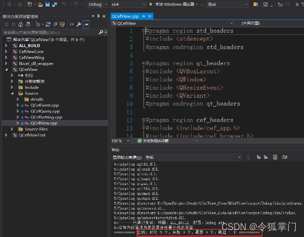 (1)QCefView是动态库项目,其它的是静态库,QCefView静态链接其它库;
