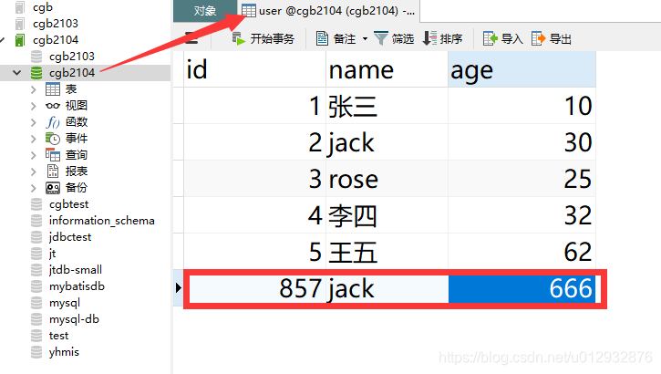 - –2,准备user表