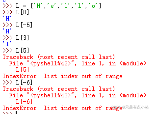 L = ['H','e','l','l','o'] # 定义列表,元素可以为数值,但怕给索引搞混了用了字符
