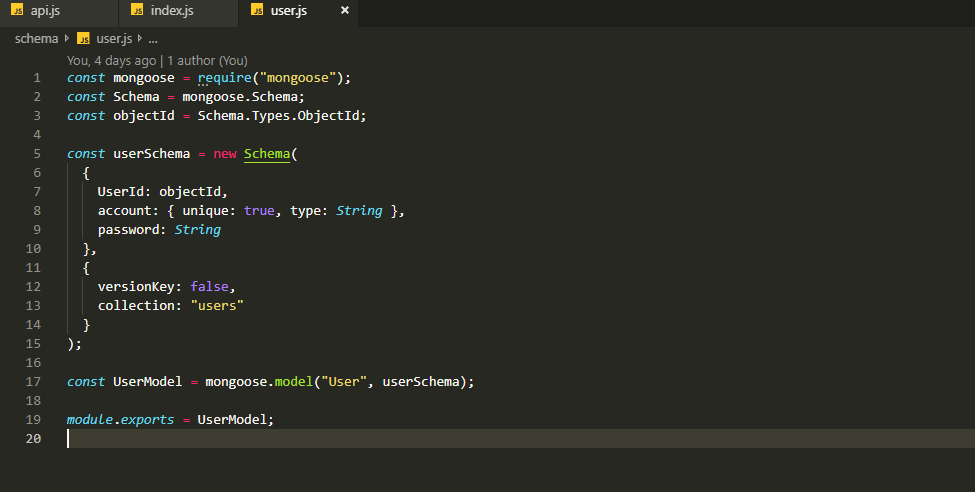 为了阐述方便,这里将userModel的定义代码贴出来: