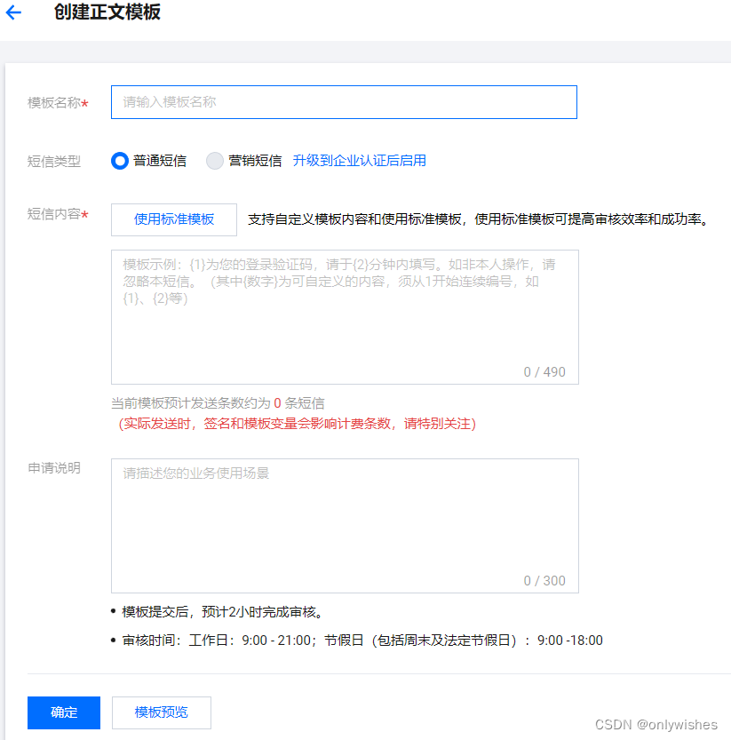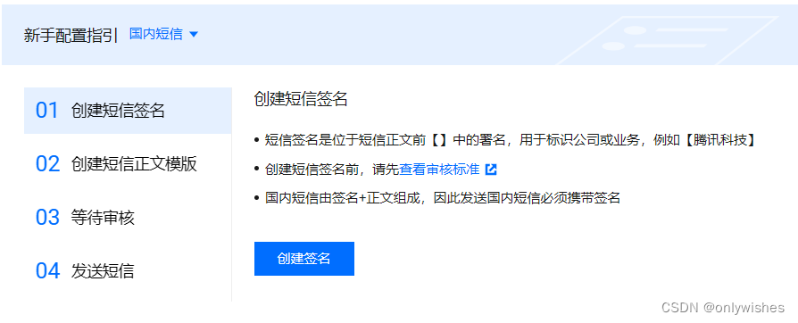 - 第一步、申请腾讯云的短信服务并配置基本信息