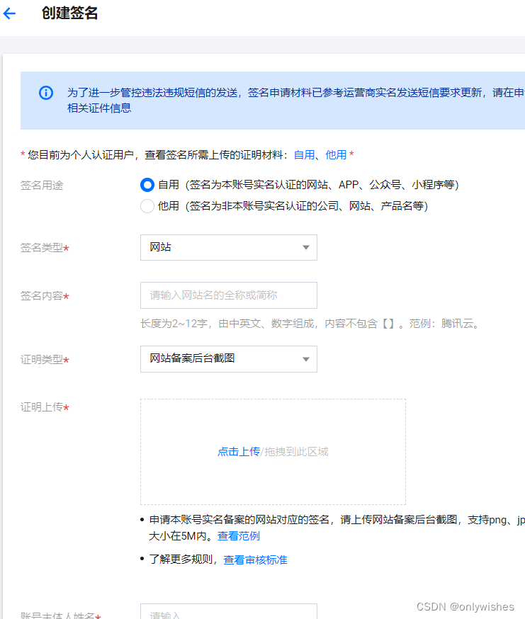 接下来我们就要进行相关的配置,首先进行创建签名,按照要求填写就行。