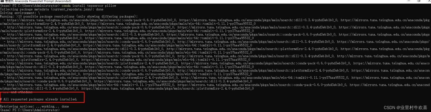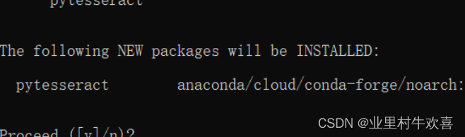 执行另外一个指令conda install pytesseract (安装pytesseract,这个安装需要一点时间等待了)