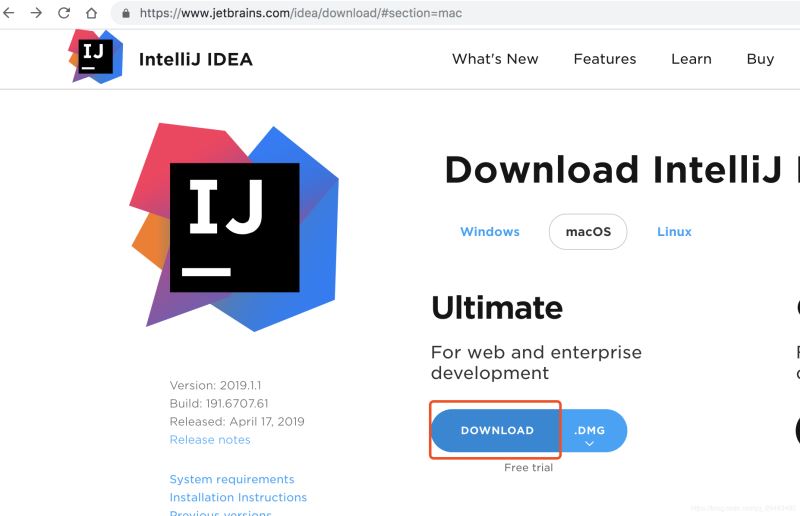点击“direct link” 就直接下载ideaIU-2019.1.1.dmg文件了。
