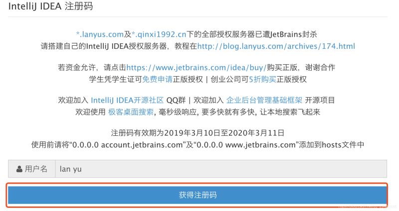 推荐激活教程 IntelliJ IDEA 2020最新激活码(亲测有效,可激活至 2089 年) 最新idea2021注册码永久激活(激活到2100年) IntelliJ IDEA号称当前Java开发效率最高的IDE工具. IntelliJ IDEA有两个版本:社区版(Community)和旗舰版(Ultimate). 社区版 是免费的.开源的,但功能较少; 旗舰版 提供了较多的功能 IntelliJ IDEA 官网:https://www.jetbrains.com/idea/ 1. 打开官网