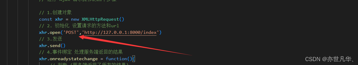 和上文的get请求基本一致,我们只需要改动几个地方的内容即可。如下图所示,当我们要进行Ajax的POST请求时,我们只需要将初始化改为POST即可。