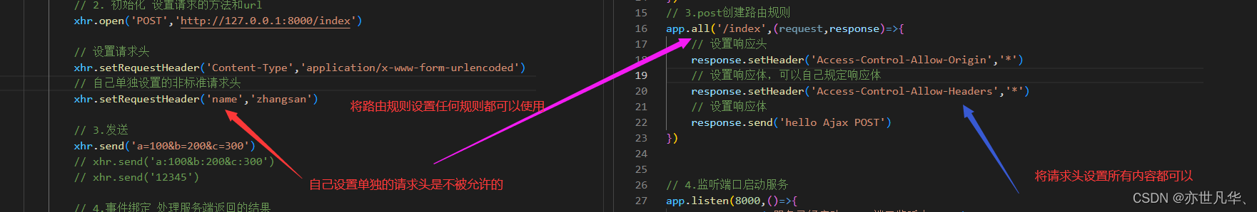 当然,我们进行 Ajax POST请求时,我们的express框架创建的路由规则也是要加上 post 规则的