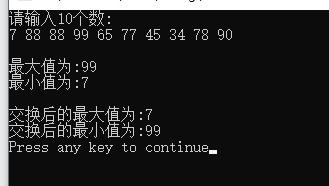 printf("\n交换后的最大值为:%d",max);