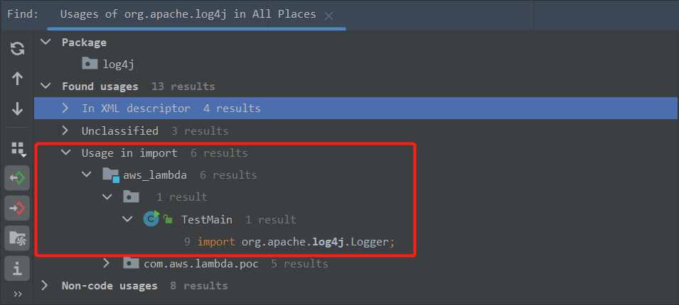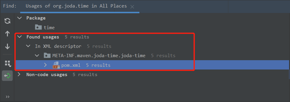 从查找结果中判断是否使用了依赖包 下面是没有使用的结果