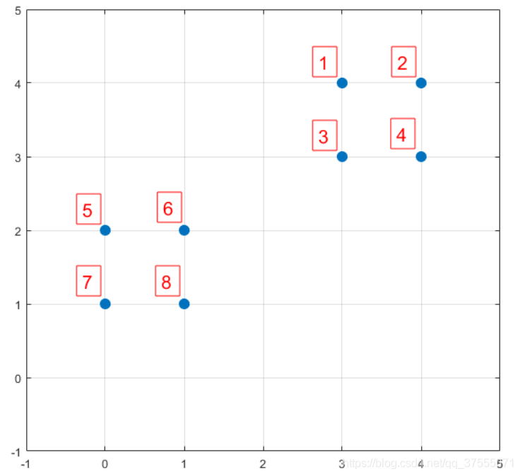 假如数据集中有8个样本,分布分布以及对应序号如下图所示: