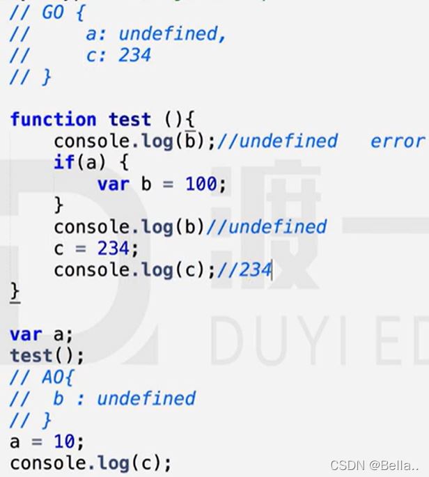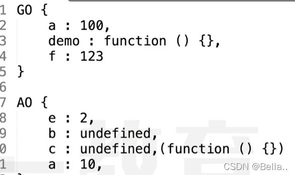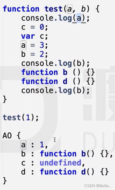 2.找形参和变量声明,将变量和形参名作为AO属性名,值为undefined