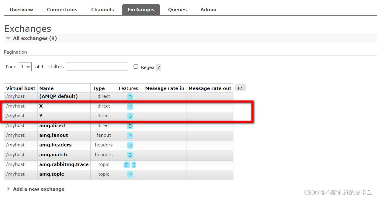 # RabbitMQ/配置 #服务器地址 spring.rabbitmq.host=服务器地址 #服务端口号 spring.rabbitmq.port=5672 #虚拟主机名称 spring.rabbitmq.virtual-host=/myhost #用户名 spring.rabbitmq.username=admin #密码 spring.rabbitmq.password=123456