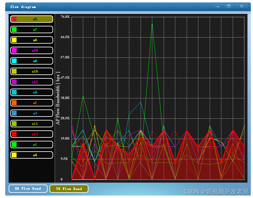 选择设备名为a5的流量图,其中a5设备的流量曲线加粗,背景半透明等效果如下图