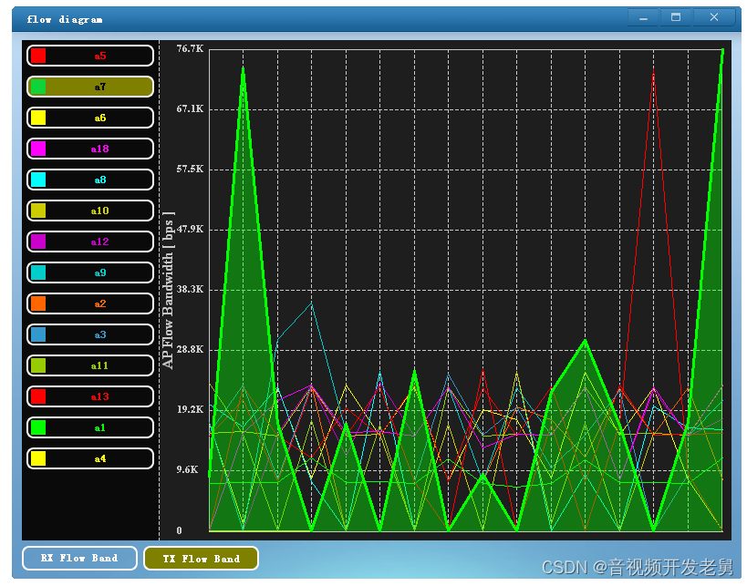 选择设备名为a7的流量图,其中a7设备的流量曲线加粗,背景半透明等效果如下图