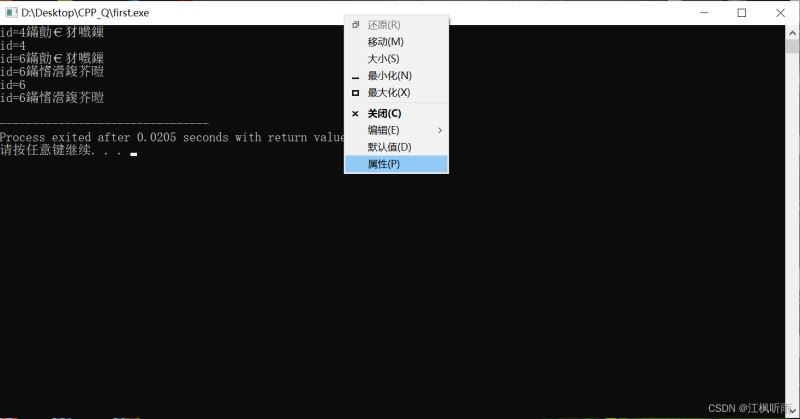 首先打开DEV C++编译运行源码,然后右键单击CMD顶部空白区域,选择“属性”,勾选“使用旧版控制台”